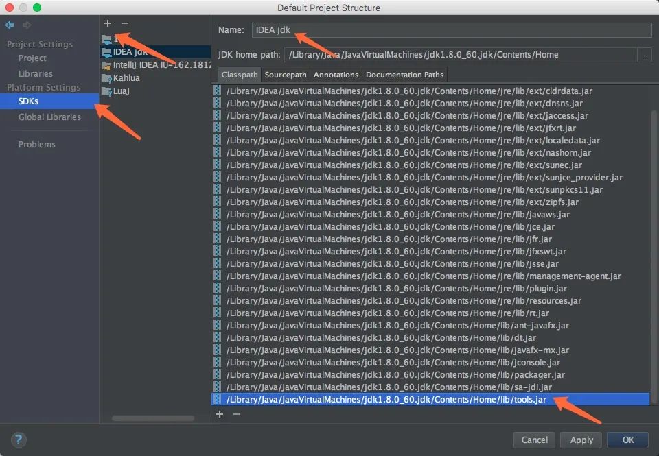 除非你在Mac上使用官方JDK,否则你需要手动添加 /lib/tools.jar 到classpath中。关注微信公众号:匠心零度,在后台回复:idea,可以获取我整最新 IDEA 教程,都是干货。