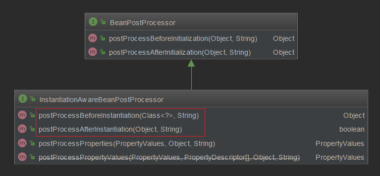 我们先定义一个 BeanProcessor 接口实现类和一个 InstantiationAwareBeanPostProcessor 接口实现类。