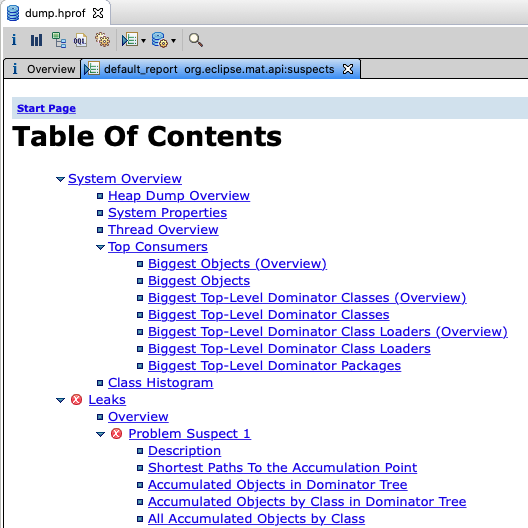 faceless@ttg12:~/tmp$ jhat dump.hprof Reading from dump.hprof... Dump file created Mon Jun 22 14:33:00 CST 2020 Snapshot read, resolving... Resolving 36246 objects... Chasing references, expect 7 dots....... Eliminating duplicate references....... Snapshot resolved. Started HTTP server on port 7000 Server is ready.