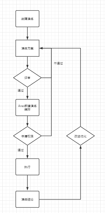 一个合格故障演练需要一套完整配套的实验执行流程。在架构设计方面,我们以故障演练平台Ares为中心,横向打通公司内部的CMDB平台(执行用户鉴权), 工单系统(演练流程审批),运维系统的SaltStack执行平台(故障注入执行),监控报警平台(对整体过程资源的监控告警)来构建故障演练平台的架构模式,以产品化、平台化思路来沉淀演练成果。