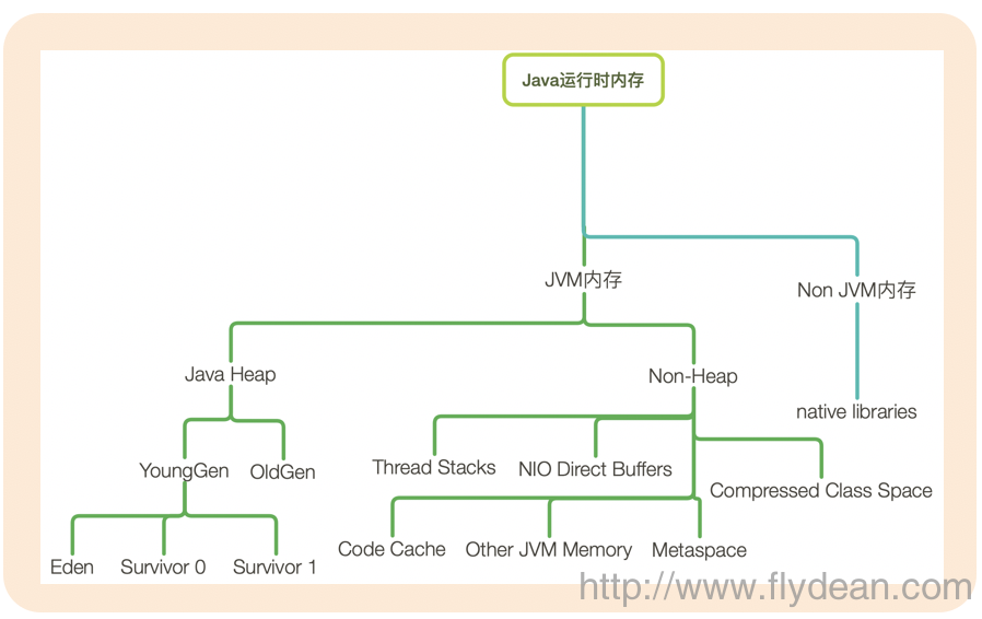 非堆内存中存储的有thread Stack,Code Cache, NIO Direct Buffers,Metaspace等。