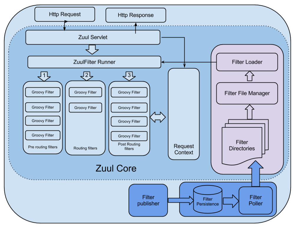 类似于MVC有一个DispatcherServerlet,zuul也有一个ZuulServerlet来映射所有的请求。对于java web都是基于serverlet来做的。