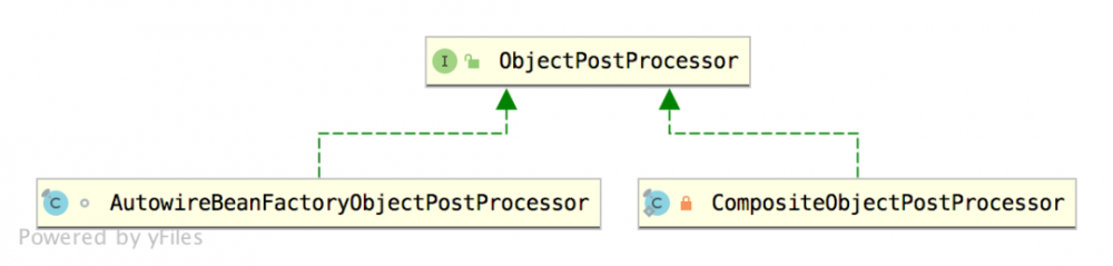 两个比较重要的实现类,其中 AutowireBeanFactoryObjectPostProcessor 值得一说,来看下 AutowireBeanFactoryObjectPostProcessor 的定义: