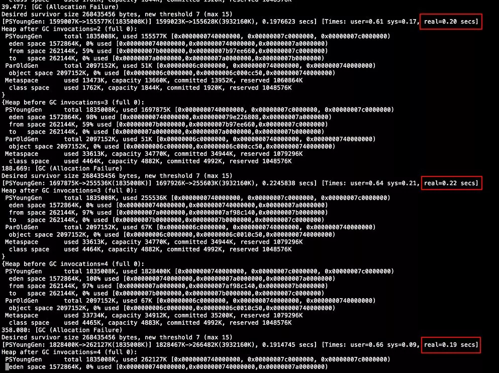 从GC log和JVM参数可以看出,GC算法使用默认的Parallel Scanvenge。
