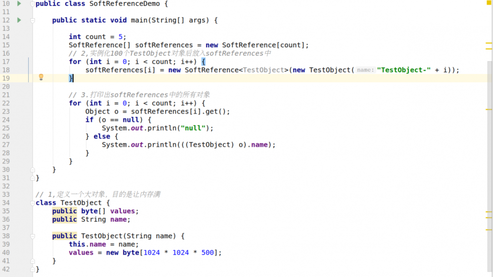 强引用的例子比比皆是,因为在日常开发中我们是会经常去new一个对象的,而该new出来的对象便是强引用的,也就是说只要该引用存在,垃圾回收器就不会回收掉。 【划重点:JVM怎么知道引用在不在?】