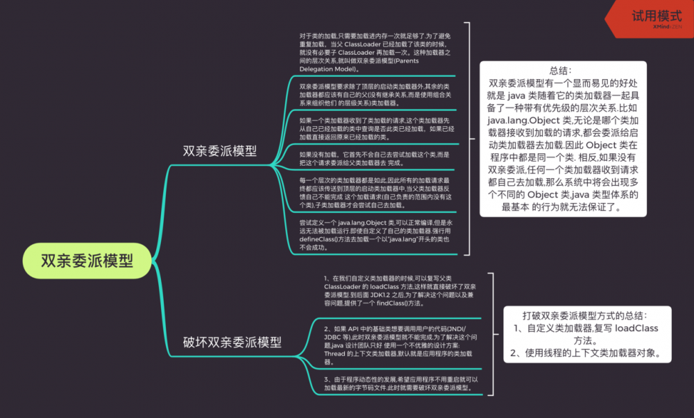 如果没有加载,它首先不会自己去尝试加载这个类,而是把这个请求委派给父类加载器去 完成。