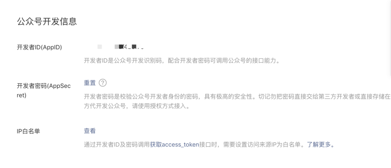 登录微信公众号 > 开发 > 基本配置 > 公众号开发信息