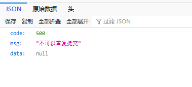 我们在浏览器中连续请求两次接口。发现第一次接口响应正常内容:1,第二次接口响应了不可重复提交的异常信息。1s之后再点击接口,发现又响应了正常内容。