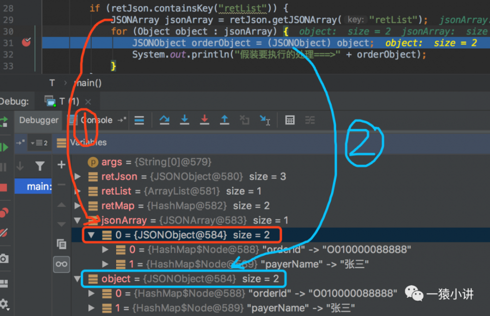 两幅图的标注 1 对比着看,会发现 低版本的 JSONArray 中存进去的是 JSONObject,而高版本的存进去的是 HashMap;