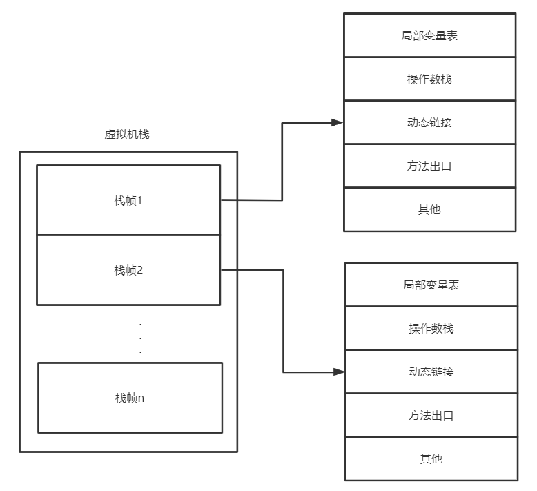 在做这道题时我们的脑中要有对应的JVM内存结构。 其中一个方法对应一个栈帧