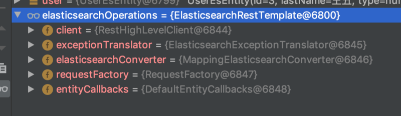 ElasticsearchRestTemplate ,我们可以通过debug模式看到这一点,如下图: