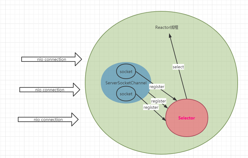 省略Selector以及ServerSocketChannel的获取注册; 将所有的操作至于reactor主线程