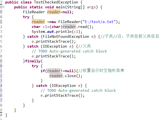 如果一个方法抛出多个已检查异常,就必须在方法的首部列出所有异常逗号隔开。