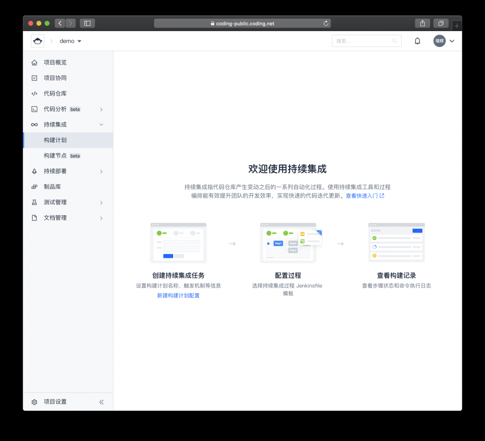 本文重点是介绍 CODING 平台持续集成自定义构建节点功能 ,具体的业务逻辑并不重要,这里已提前准备好了一份 演示代码 ,可以结合下面的步骤实际操作。