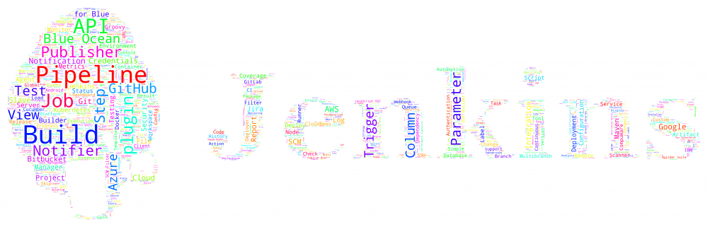 以 Jenkins logo 为背景图片,生成的词云图如下: