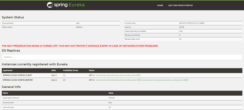 先访问 http://localhost :8761/,可以看到两个config-serve都正常注册到注册中心。