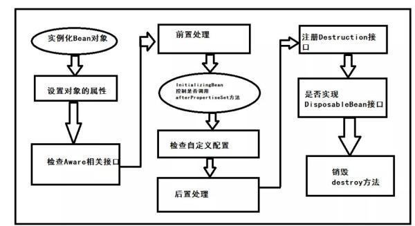 而这图解中,把 Spring 中 Bean 的生命周期分成了好几个步骤,分别是: