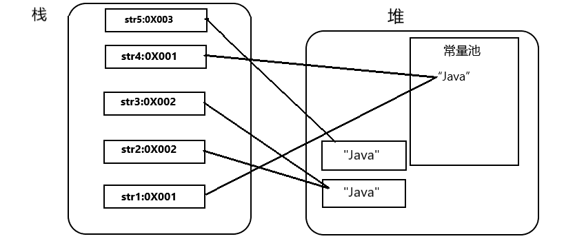 String str2 = new String("Java"); //在堆中创建对象str2的引用