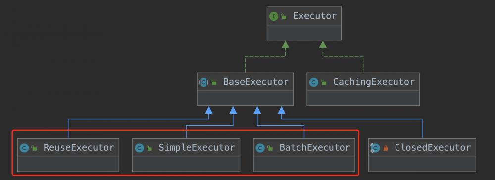 上面的图中,虽然列出了5个Executor(BaseExecutor是抽象类),其实Executor只有三种: