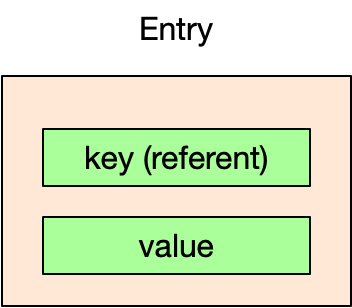 跟进 Entry 的父类,可以看到 ThreadLocal 最终赋值给了 WeakReference 的父类 Reference 的 referent 属性。即,可以认为 Entry 持有了两个对象的引用:ThreadLocal 类型的「弱引用」和 Object 类型的「强引用」,其中 ThreadLocal 为 key,Object 为 value。如图所示: