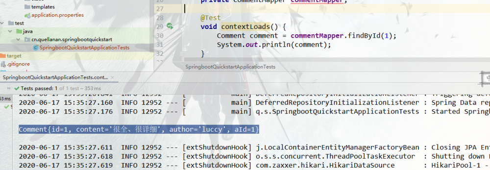 #开启驼峰命名匹配映射mapper mybatis.configuration.map-underscore-to-camel-case=true #配置mybatis的xml映射配置文件路径 mybatis.mapper-locations=classpath:mapper/*.xml #配置mybatis映射配置文件中实体类别名 mybatis.type-aliases-package=cn.quellanan.springbootquickstart.pojo 复制代码
