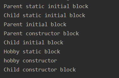 1.静态代码(static{}块、静态字段赋值语句) > 初始化代码({}块、实例字段赋值语句) > 构造函数代码