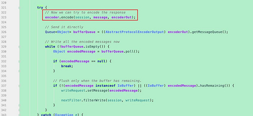 其实是在这里把消息发出去的 org.apache.mina.filter.codec.ProtocolCodecFilter#filterWrite