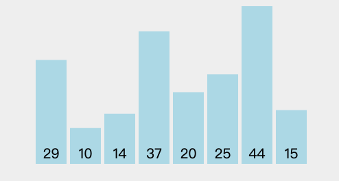 假如我们有一个数组:29,10,14,37,20,25,44,15,怎么对它进行选择排序呢?