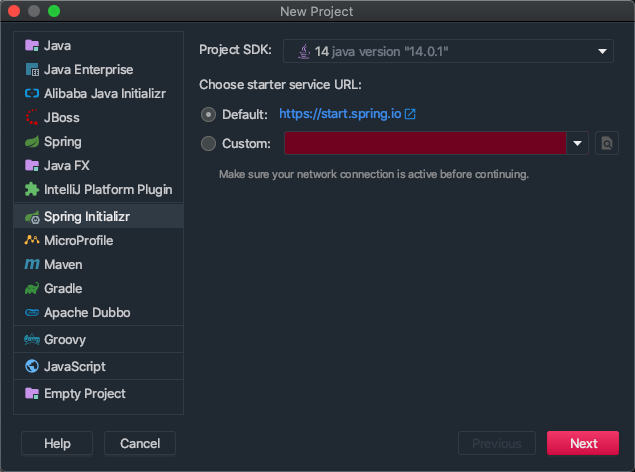 第二步:填写项目信息,注意选择 Maven 以及 Java 14。
