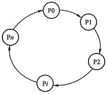 循环等待条件:存在一种线程资源的循环等待链,链中每一个线程已获得的资源同时被链中下一个线程所请求。即存在一个处于等待状态的线程集合{Pl, P2, ..., pn},其中 Pi 等待的资源被 P(i+1)占有(i=0, 1, ..., n-1),Pn 等待的资源被 P0 占有,如图所示: