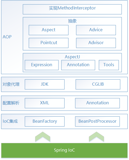 AOP,主要专注于基于方法的AOP功能实现,分为三个方面: