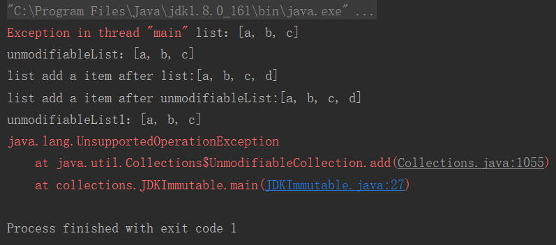 System.out.println("unmodifiableList1:" + unmodifiableList1);