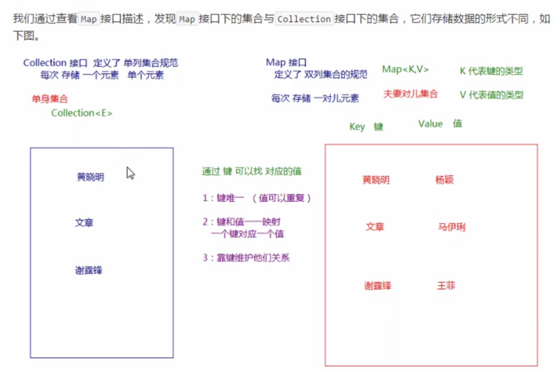 2.Map集合中的元素,key和value的数据类型可以相同,也可以不同。