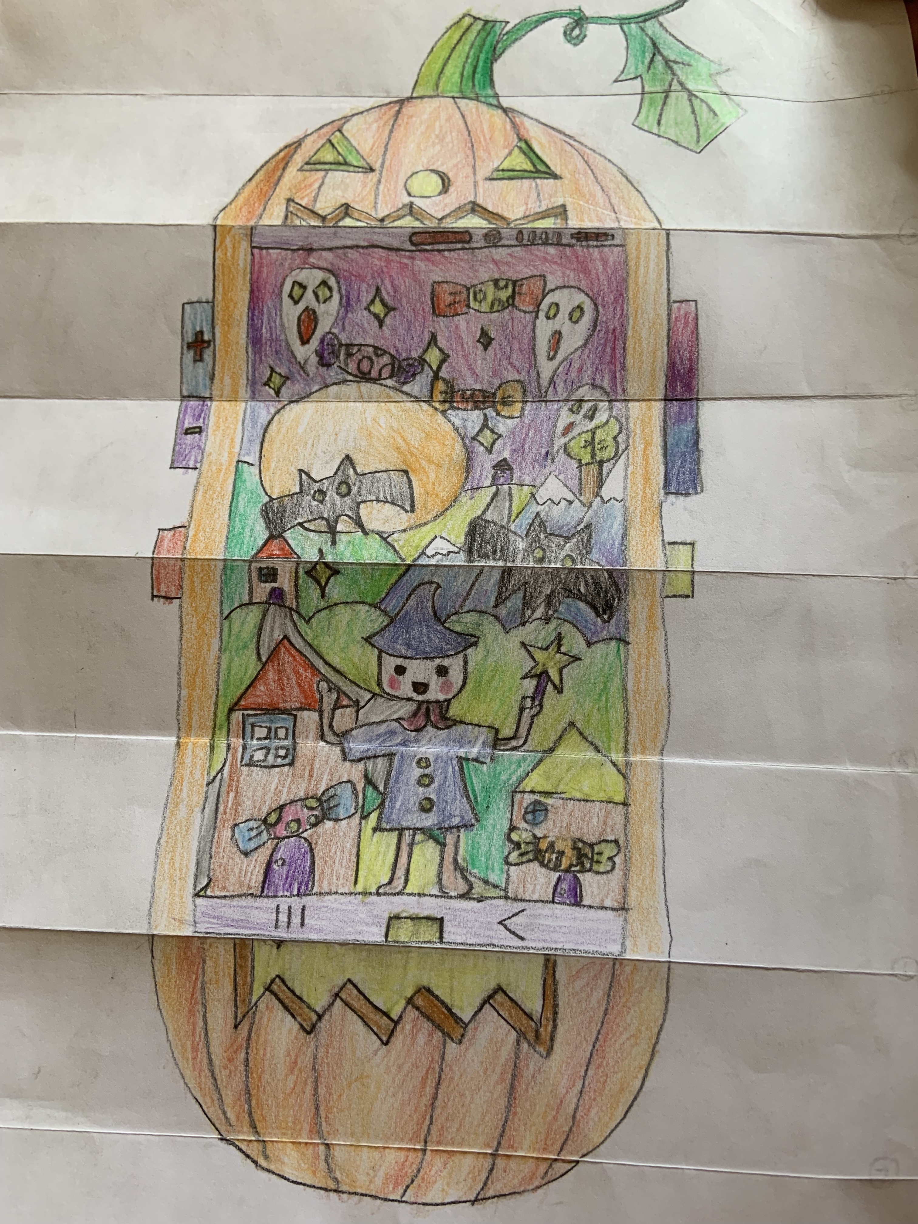 女儿在万圣节手绘的南瓜手机,该手机的特点:南瓜外表,可折叠。手机桌面可以自定义,随意组合。 Daughter's Halloween hand-painted pumpkin mobile phone, the mobile phone features: pumpkin appearance, foldable. The mobile phone desktop can be customized and combined at will.