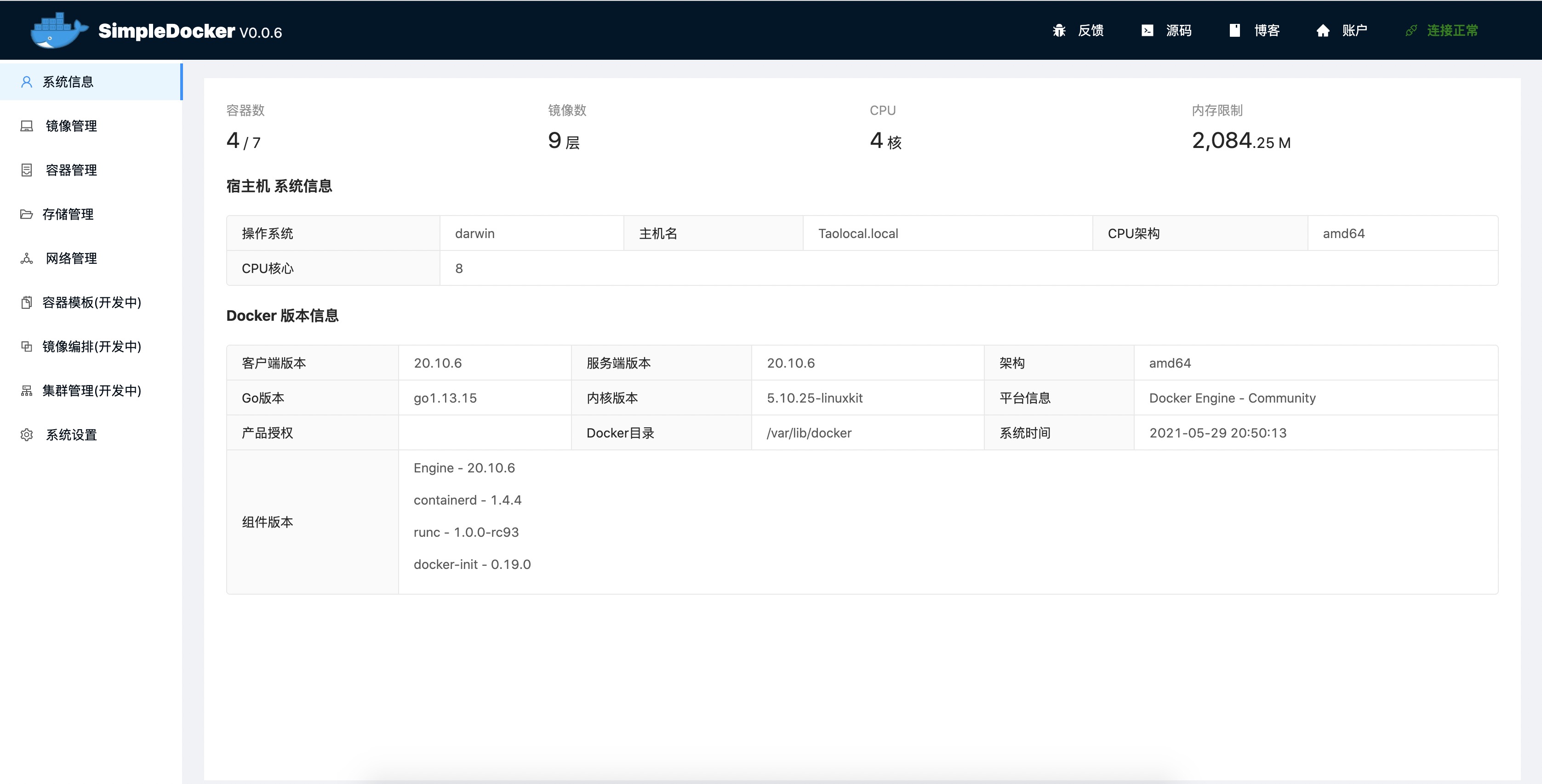 SimpleDocker 是一个简单的Docker控制面板,致力于可以让用户更方便、更无障碍、更舒适的使用Docker,其界面简洁、操作便捷,功能强大,可以带来更好地运维体验。