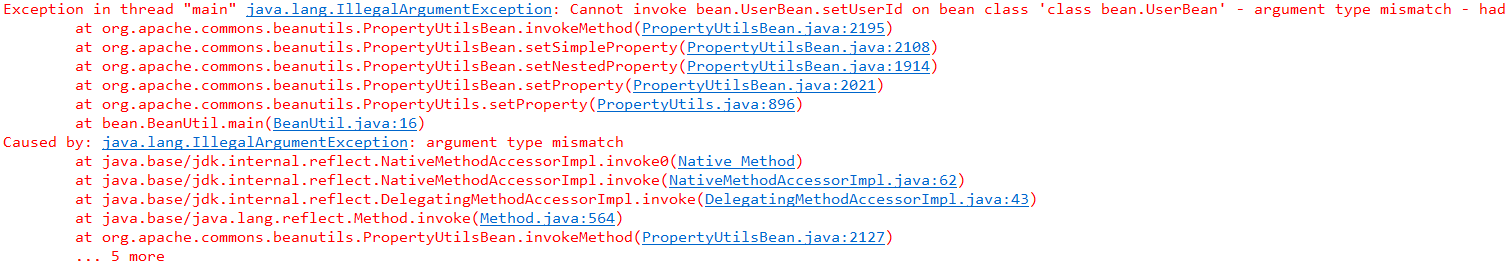 13 //PropertyUtils以字符串的形式set userId的值 报错 必须按其原本的数据类型为其赋值