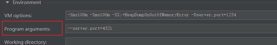 // 4321 同名的命令行参数覆盖虚拟机参数