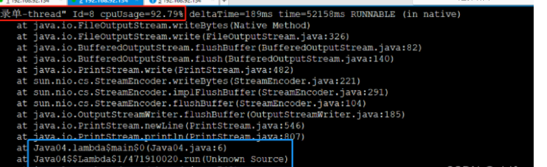"录单-thread" Id=8 cpuUsage=92.79% deltaTime=189ms time=52158ms RUNNABLE (in native)