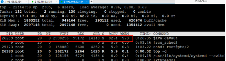 ②"arthas-command-execute" Id=23 cpuUsage=1.06%,这个是arthas监控工具。