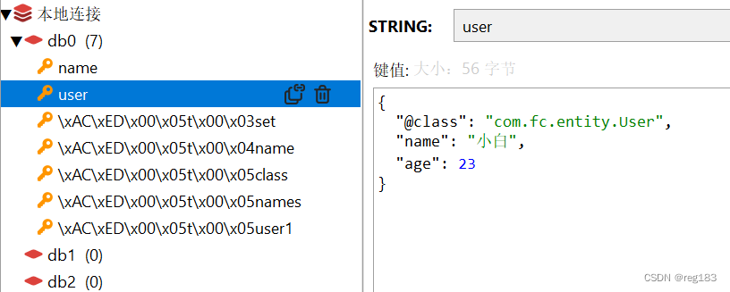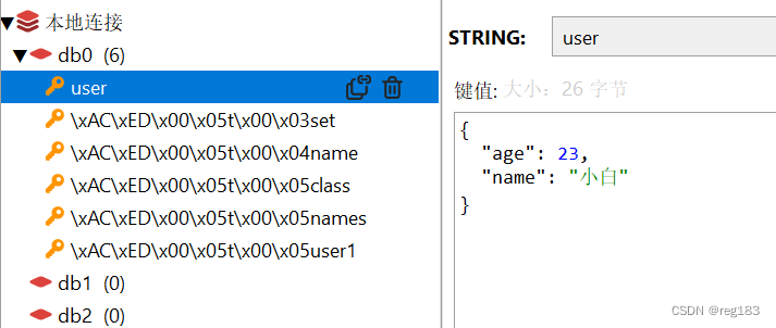 redisTemplate.opsForValue().set("user", new User("小白", 23));