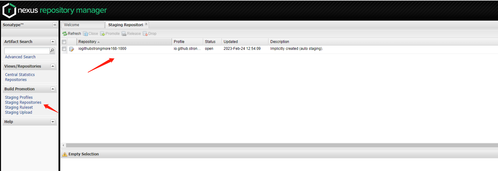 io.github.strongmore168,strongmore168为我的github账号,在github账号下创建一个空项目,名称为