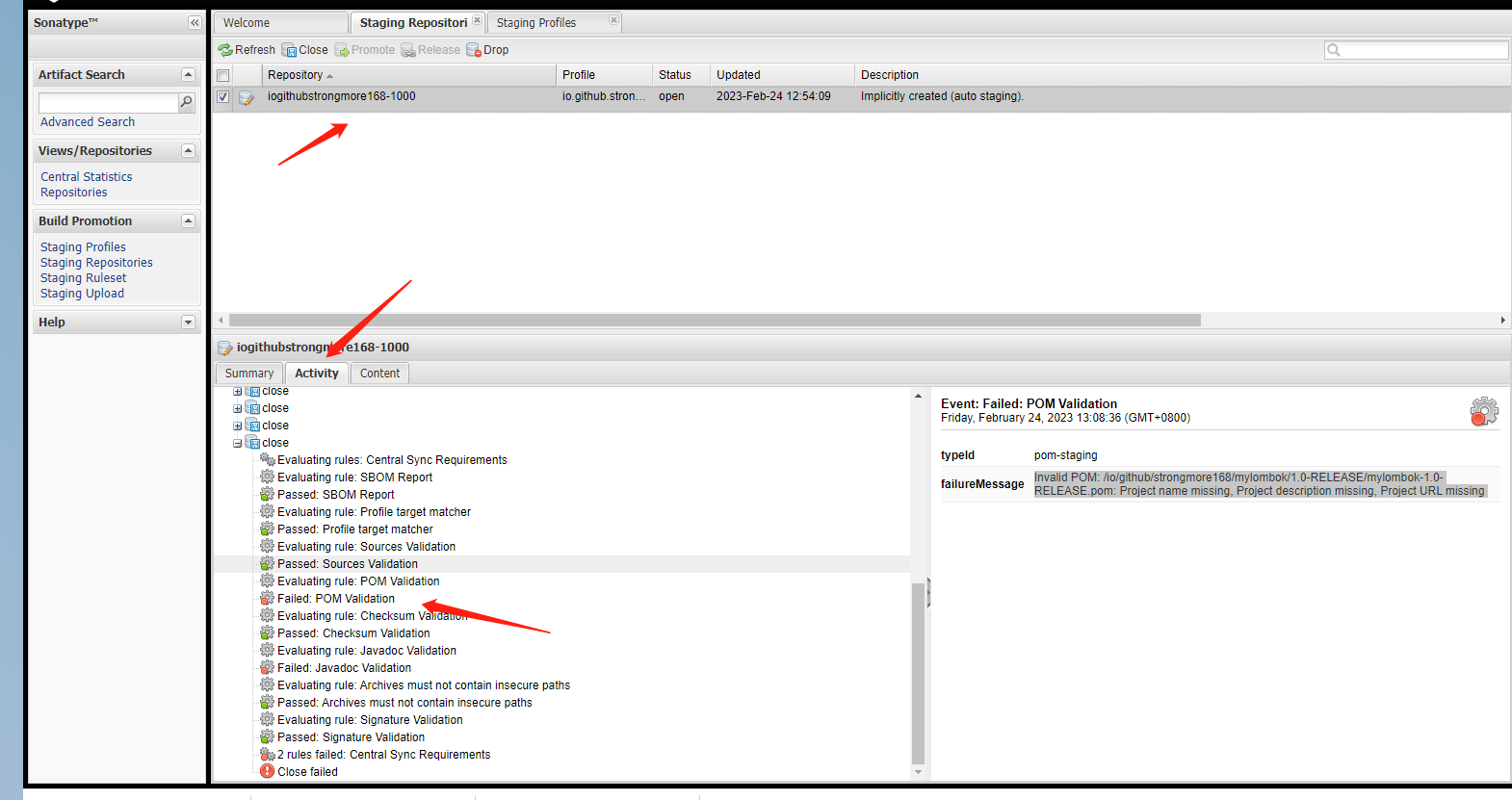 可以看到close失败的原因。注意,这个网站很卡,不要使用VPN,使用了更卡。尝试了很多次终于close成功了。close成功之后再点击release发布。
