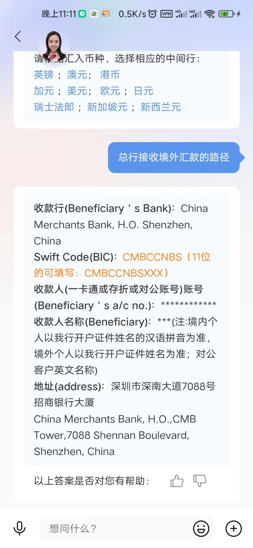 - 银行名称:China Merchants Bank, H.O. Shenzhen, China(不需要改)