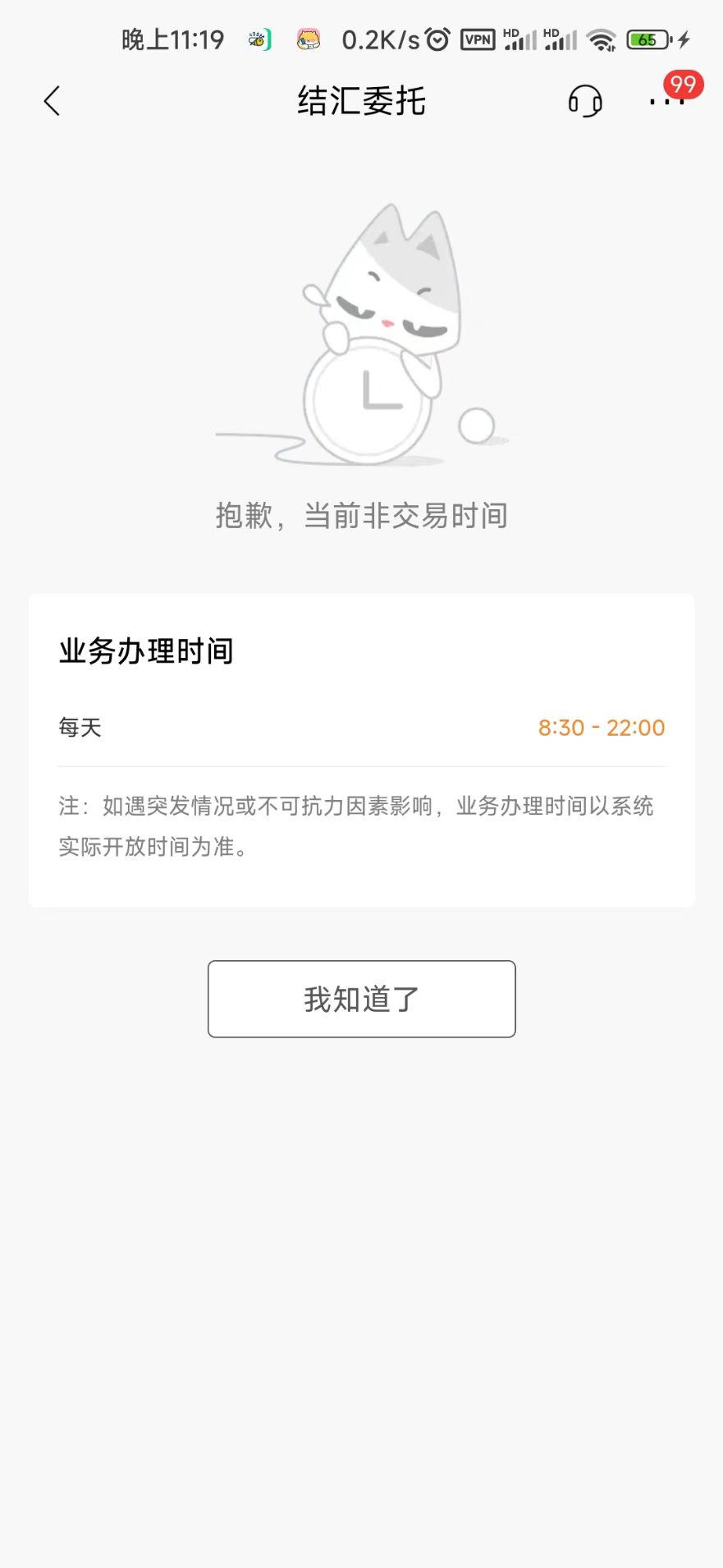 需要注意的是结汇业务办理时间是 8:30-22:00,如果超出时间,需要在下一个工作日办理。