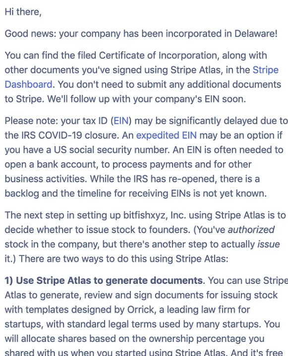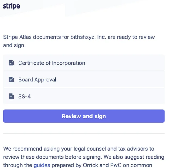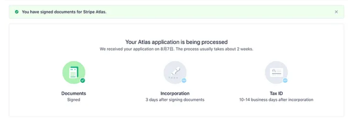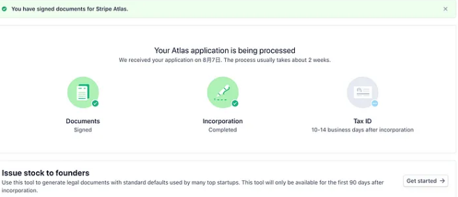 提交后这个表单后,Stripe就会根据我们表单中填写的内容,制作出相关的文件,并提交给特拉华州的监管部门。然后我们只需要安静的等待回应就行了。