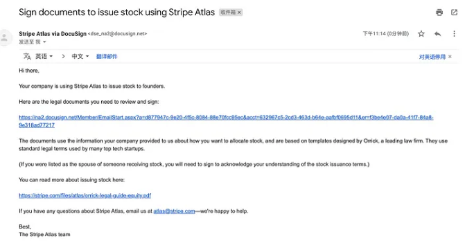 邮件的大致就是说:我们已经给你准备好了注册公司相关的文件了。如果你觉得没问题,就赶紧签字,签完字后我们就会把它提交给特拉华州的监管部门了。