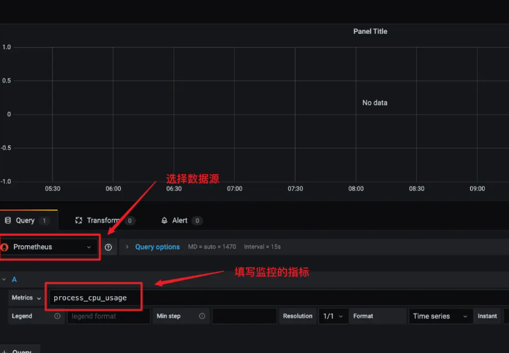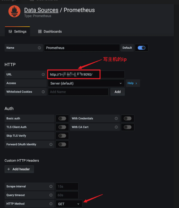 这里我们选择Prometheus 当做数据源,这里我们就配置一下Prometheus 的访问地址,点击