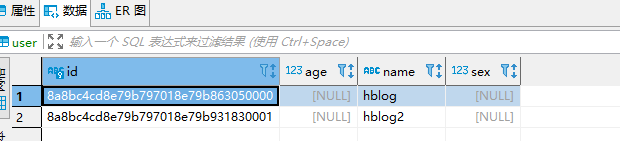 Hibernate: insert into user (age, name, sex, id) values (?, ?, ?, ?)