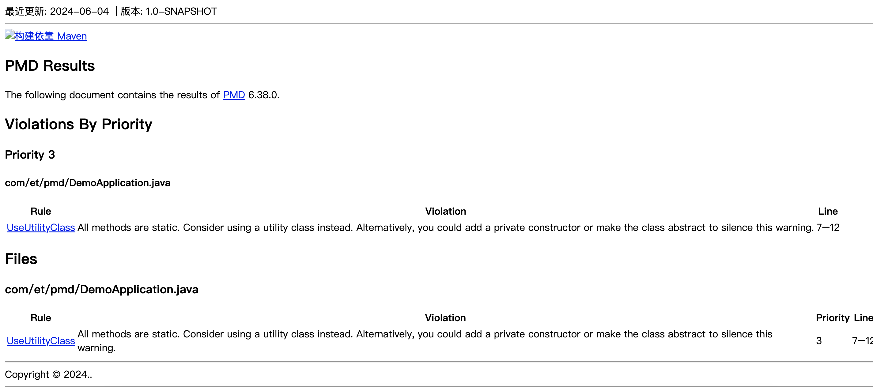 运行 mvn pmd:check ,target/pmd-reports/下会生成检测报告