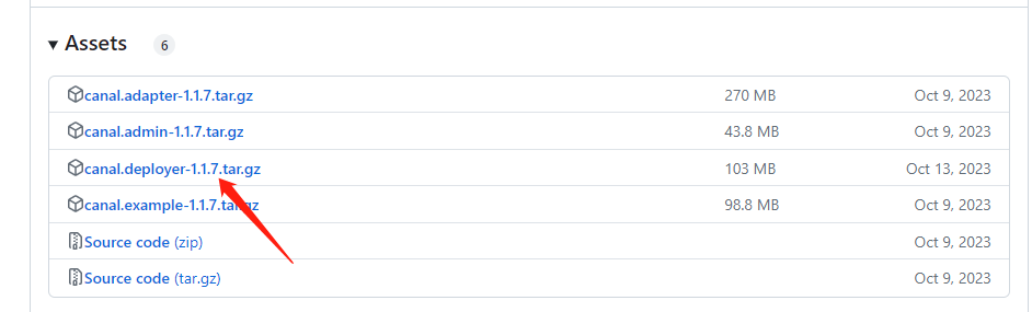 下载我canal客户端,官方地址进行相应版本的安装包进行下载(注意:如果下载翻到本文最下面联系我): https://github.com/alibaba/canal/releases